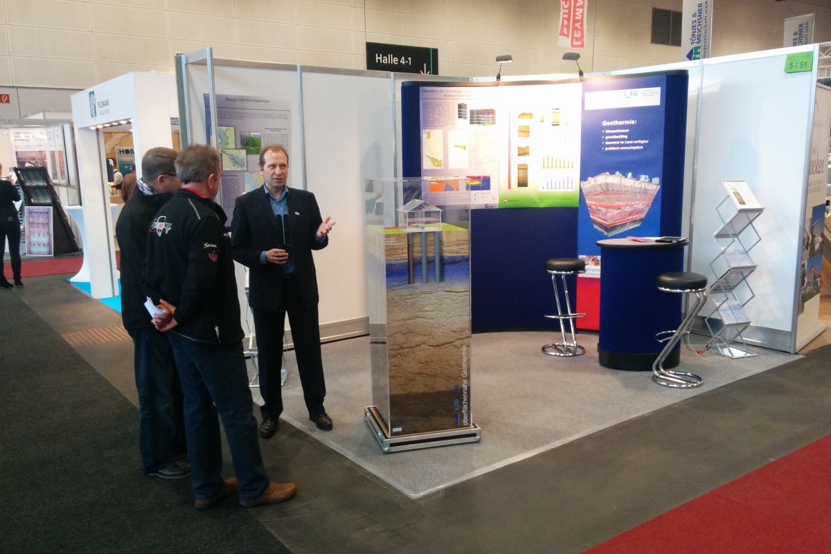 Ebenfalls zu gast auf der Sonderschau ist der Geologische Dienst für Bremen (GDfB) und Niedersachsen (LBEG). Die Geologischen Landesämter bieten am Stand eine kostenfreie und neutrale Information hinsichtlich der bei der Nutzung von Erdwärme relevanten geologischen Untergrundverhältnisse. Auch hinsichtlich der am Standort gültigen genehmigungsrechtlichen Rahmenbedingungen kann Auskunft erteilt werden. Neben der Geothermie liegen bei den Geologischen Diensten auch Informationen zu anderen, den Baugrund betreffenden Fragestellungen, wie zum Beispiel der Möglichkeiten der Regenwasserversickerung Informationen vor.